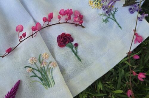 Este raminho bem singelo foi a primeira tentativa de adornar algo no bordado. Este trabalho tem muito valor para mim. Usei linha mescla de algodão Varicôr.