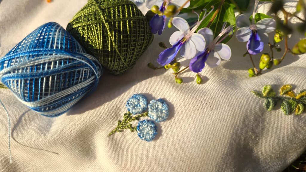 Nesta aula recente optei por linha Perlé, 1 fio dela foi suficiente pois equivale a dois fios e meio de Moliné.