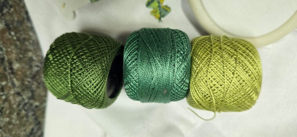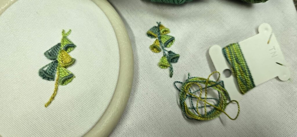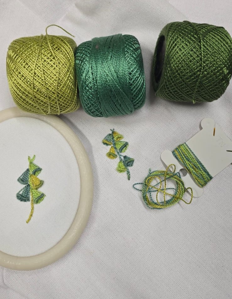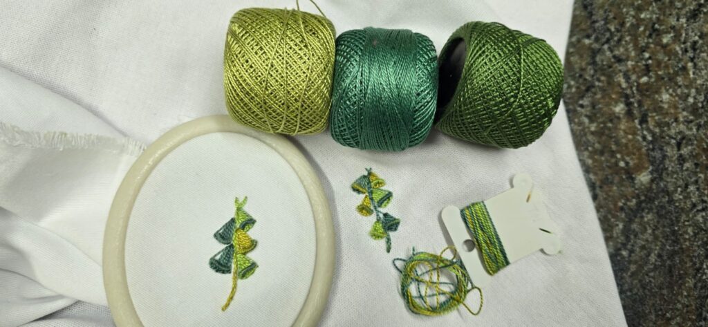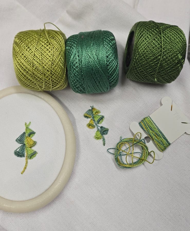Eu usei uma linha Perlé 8 mescla tingida por Vera Suzuki.