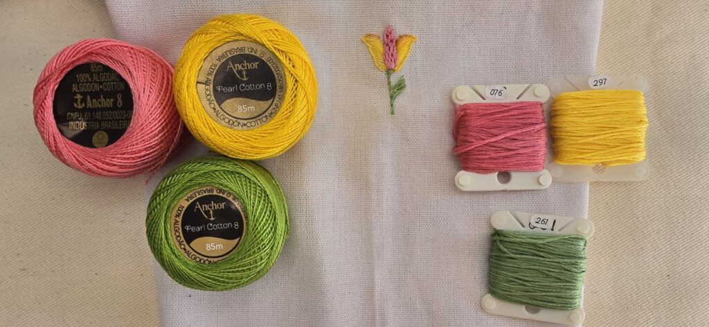 Você poderá usar linhas Perlé Anchor mais comum no mercado.